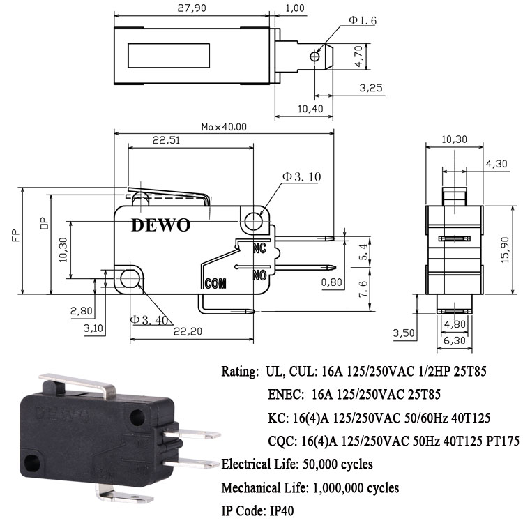Terminal type:187 quick connect terminal/250 quick connect / Solder terminal/ left side PCB terminal/ right side PCB terminal/ Screw terminal