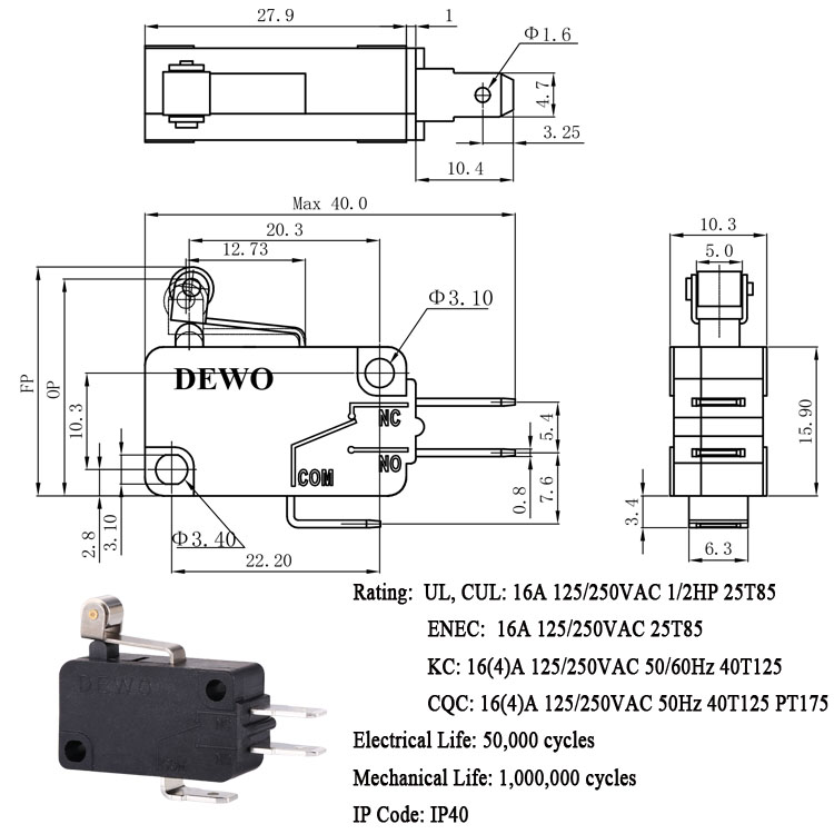 Terminal type:187 quick connect terminal/250 quick connect / Solder terminal/ left side PCB terminal/ right side PCB terminal/ Screw terminal