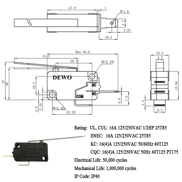 Terminal type:187 quick connect terminal/250 quick connect / Solder terminal/ left side PCB terminal/ right side PCB terminal/ Screw terminal