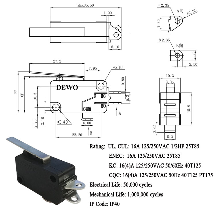 DV-16-A02-AA1-100E型微動開關